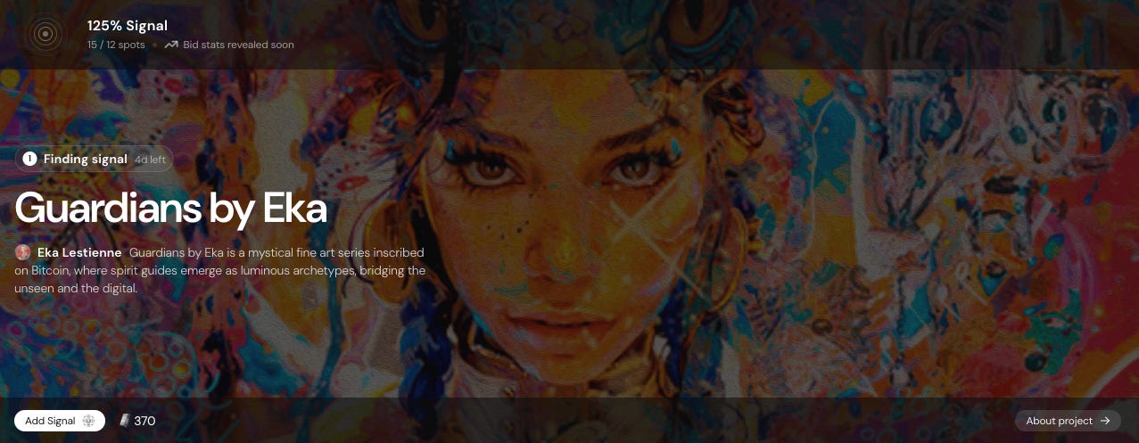Guardians by Eka is a mystical fine art series inscribed on Bitcoin, where spirit guides emerge as luminous archetypes, bridging the unseen and the digital.