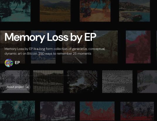Memory Loss by EP is a long form collection of generative, conceptual, dynamic art on Bitcoin. 250 ways to remember 25 moments.