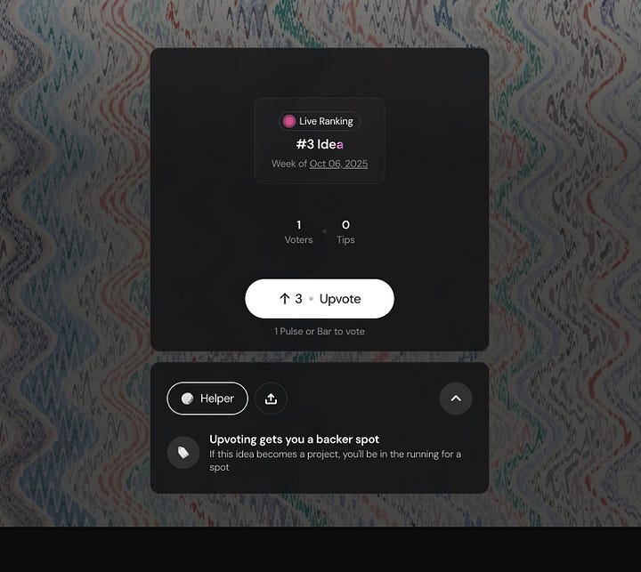 Users who signal interest in your Idea use their one free daily Pulse or paid Signal Bars to upvote concepts they like. But upvoting isn’t just simple “like”—it comes with real perks: